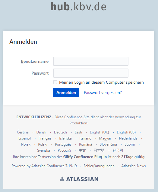Wenn Sie sich in Ihrem KBV HUB Bereich anmelden möchten, kommen Sie zuerst zur Anmeldemaske: