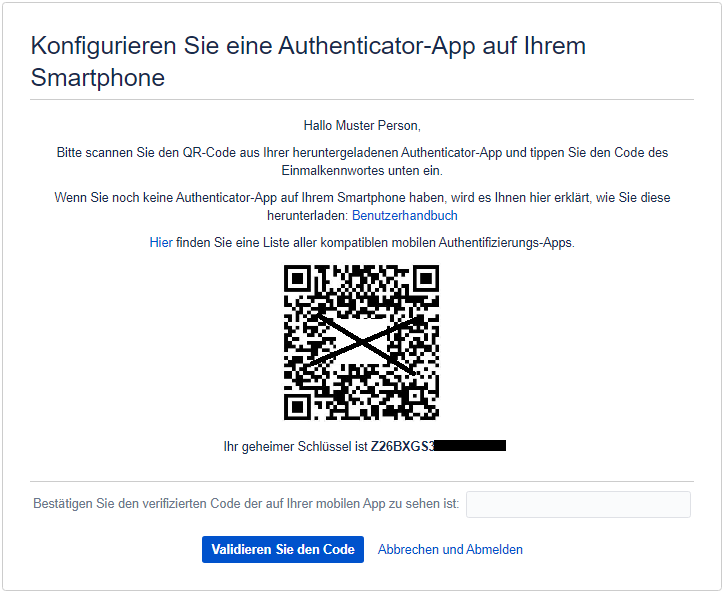 Wie Sie die App auf Ihr Smartphone konfigurieren und den 2FA Erstanmeldeprozess abschließen, finden Sie hier.