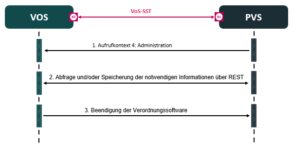 Die Behandelnde Person kann die VoS mit dem Aufrufkontext = 4 aus dem PVS aufrufen. Diese Anforderung ermöglicht den direkten Aufruf der Verordnungsfunktion „Administration“ mit den dazugehörigen Daten. Beispiel: Administration der VoS, um z. B. Updates einzuspielen.