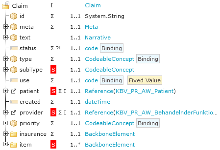 Das Element Claim.item.category.coding sollte mit einem MS versehen werden, da es ein 1..1 Element ist und das Profil bei Fehlen nicht validiert werden kann.