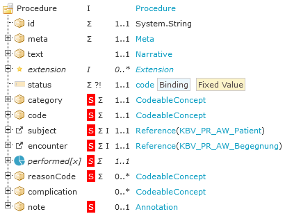 Profil für die Zusammenfassung einzelner OPS-Codes zu einer Operation Die im FHIR®-Profil abgebildete Information findet sich im Informationsmodell unter 4.2 Allgemeine Ambulante Operation, 4.2.1 Dokumentationsdatum, 4.2.10 Beschreibung, 4.2.11 Gesamtzeit, 4.2.2 Status, 4.2.3 Kategorie - Code/Bezeichnung, 4.2.3.1 Code-Auswahl, 4.2.4 Prozedur - Code/Bezeichnung, 4.2.4.1 Code-Auswahl, 4.2.4.2 Bezeichnung, 4.2.5 Referenz Patient, 4.2.6 Referenz Begegnung, 4.2.7 Datum, 4.2.8 Grund, 4.2.8.1 GOPs und 4.2.9 Komplikationsbeschreibung.