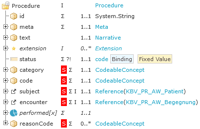Das Element Procedure.category.coding:Klassifizierung_der_Ressource, sowie sämtliche 1..1 Kind-Elemente sollten mit einem MS versehen werden, da es ein 1..1 Element ist und das Profil bei Fehlen nicht validiert werden kann.