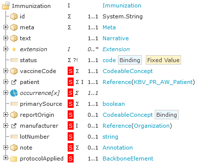 Im Element Immunization.occurrence<span class="error">[x]</span>:occurrenceDateTime wurde eine fehlerhafte Definition übertragen. Diese scheint vom MIO Impfpass zu kommen, da sich diese auf die Szenarien im Impfpass bezieht.