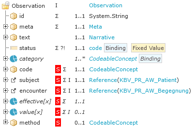 • Das Element Observation.category, sowie die 1..1 Kind-Elemente sollten mit einem MS versehen werden, da es ein 1..1 Element ist und das Profil bei Fehlen nicht validiert werden kann.