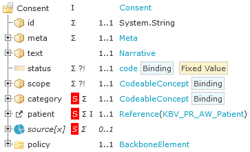 Patientenverfuegung Die im FHIR®-Profil abgebildete Information findet sich im Informationsmodell unter 35. Patientenverfügung, 35.1 Status, 35.2 Zustimmungsumfang, 35.3 Typ, 35.4 Referenz Patient, 35.5 Referenz Anlage und 35.6 Sicherheitsvorgaben.