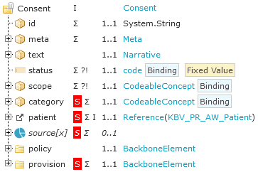 Das Element Consent.category.coding sowie die 1..1 Kind-Elemente sollten mit einem MS versehen werden, da es ein 1..1 Element ist und das Profil bei Fehlen nicht validiert werden kann.