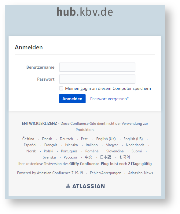Wenn Sie sich in Ihrem KBV HUB Bereich anmelden möchten, kommen Sie zuerst zur Anmeldemaske:
