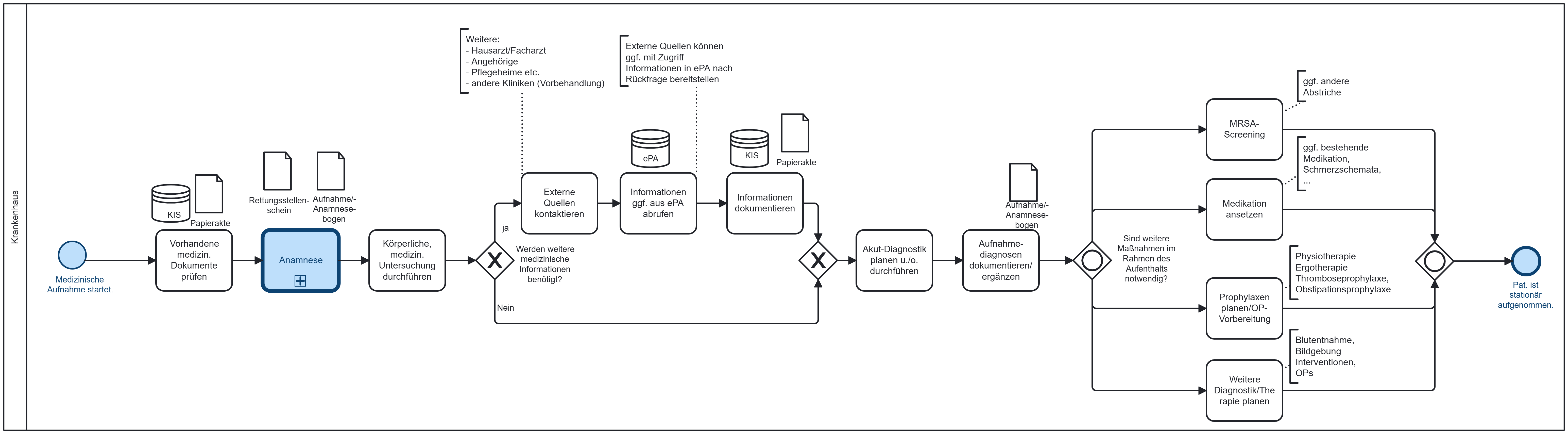 Ein wesentlicher Bestandteil des stationären Aufnahmeprozesses in einem Krankenhaus ist die medizinische Aufnahme, die von einem Arzt oder einer Ärztin durchgeführt wird.