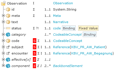 Das Element Observation.category, sowie die 1..1 Kind-Elemente sollten mit einem MS versehen werden, da es ein 1..1 Element ist und das Profil bei Fehlen nicht validiert werden kann.