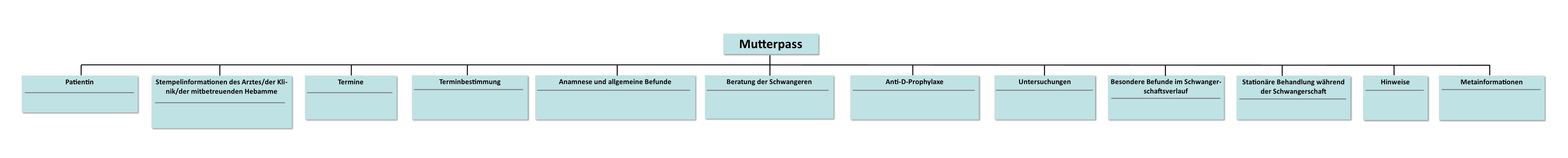 Ein einzelner Eintrag kann unterschiedliche Informationen enthalten, abhängig von den jeweils stattgefundenen Vorsorgeuntersuchungen. Es können beliebig viele einzelne Einträge erzeugt werden, welche jeweils einzeln in der elektronischen Patientenakte (ePA) der Versicherten hochgeladen und sichtbar gemacht werden. Somit setzt sich der digitale Mutterpass aus der Summe aller einzeln in die ePA hochgeladenen Einträge zusammen und wird dann als Gesamtdokument in der ePA zur Ansicht gebracht.