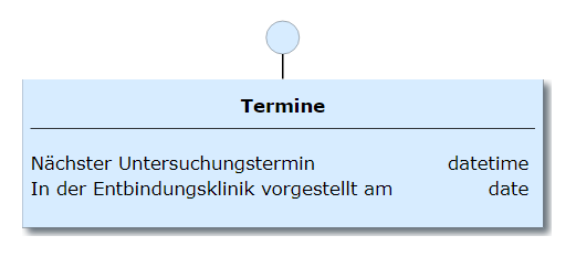In diesem Element können die nächsten Untersuchungstermine sowie das Datum der Vorstellung in der Entbindungsklinik dokumentiert werden.