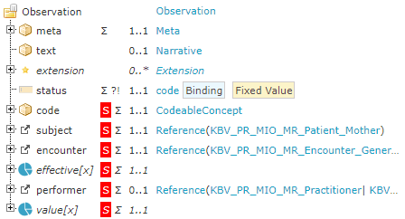 In diesem Profil können Auffälligkeiten während des I. Screenings dokumentiert werden. Die im FHIR®-Profil abgebildete Information findet sich im Informationsmodell unter 9.3.2.4 Auffälligkeiten.
