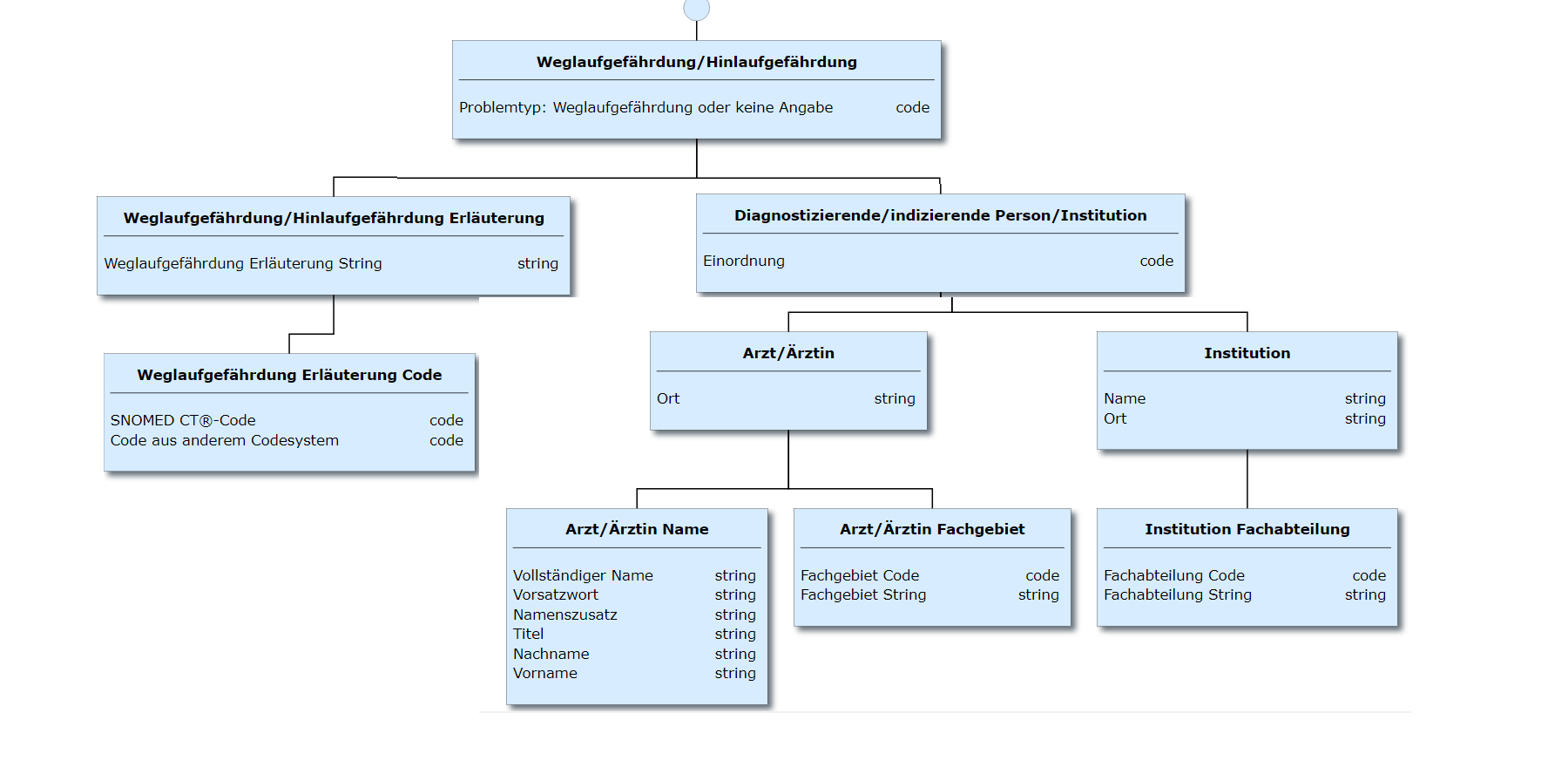 Die folgende Abbildung enthält eine Übersicht über das Element Weglaufgefährdung/Hinlaufgefährdung.