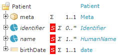 In diesem Profil können Angaben zum Patienten dokumentiert werden. Die im FHIR®-Profil abgebildete Information findet sich im Informationsmodell unter 1.2.3 Geburtsdatum, 1.2.2.2 Geburtsname, 1.2.2.1 Name, 1.7.4 Kindesalter, 1.2 PatientIn, 1.2.1.3 pid, 1.2.1.2 Versichertennummer_PKV, 1.2.1.4 VersichertenID_GKV, 1.2.1.1 Versichertennummer_kvk, 1.2.1 Identifikator, 1.7.1 Geschlecht Perzentilkurve und 1.2.2 Name.