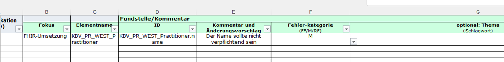 - Die Kommentierung findet in einer dafür zur Verfügung gestellten Excel-Tabelle statt.